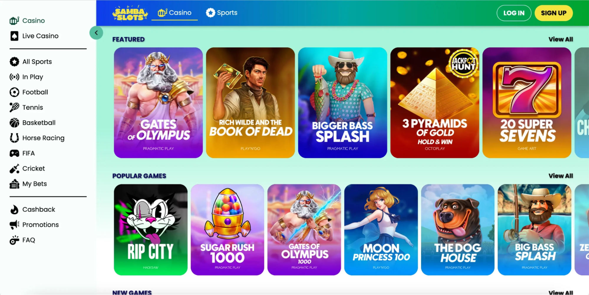 | Games | Slots, table games, live |